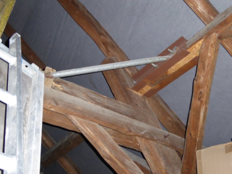 Bei der Instandsetzung eines Dachtragswerkes wurde die Mittelpfette abgesägt.