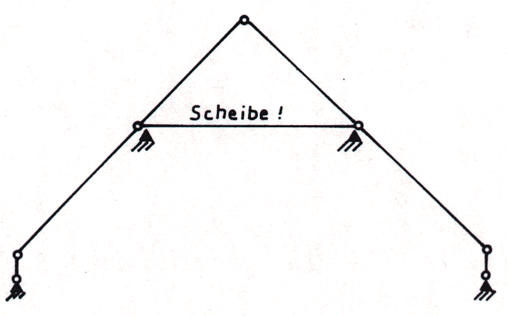 Diese Systemlösung beschreibt das Tragwerk völlig unzutreffend, da ein statisch unbestimmtes System nur unter ganz bestimmten, eng abgegrenzten Randbedingungen aufgelöst werden kann.