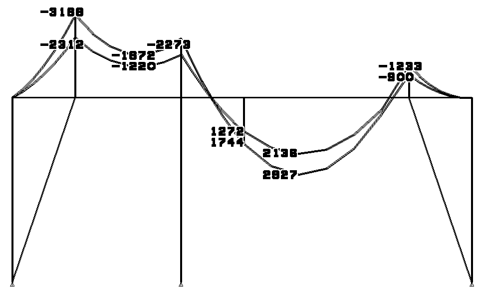Die Biegemomente werden in allen Bauteilen wesentlich verringert. Trotzdem bleibt die Biegebeanspruchung des Endstiels im kleinen Feld. Die Ableitung der Horizontalkräfte am Fußpunkt darf ebenfalls nicht unberücksichtigt bleiben.
